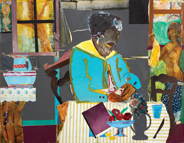 At his death on March 12, 1988, he was called the foremost “black artist” of the 20th century, so he was. But the phrase black artist must be understood as a description, not a label. He has also been called America’s greatest collage artist. In this medium, he stretched its possibilities raising it “to a mode of expression, so intensely personal, that it is difficult to think of another artist so closely associated with it.” His collages reflect optimism. Even in works that represent poverty, there is still a sense of affirmation and strength. In the lives of his people-their happiness and pain, their music and ritual-he felt the potential for myth.