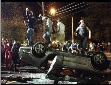 Keene, New Hampshire, Pumpkinfest riot. Just kids being kids. Ruffians, not thugs. No risk of being shot dead. No armored vehicle police battalions — pepper spray, tear gas and some arrests. White privilege at its finest.