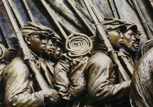 This is the Saint-Gaudens memorial on Boston Common to the 54th Massachusetts Regiment, just one among the black Union regiments. Contrary to the impression left by Hollywood, they were not utterly wiped out at Ft. Wagner. Their numbers restored, they took part in other battles.